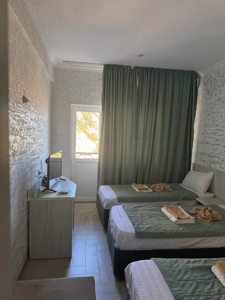 Номера категории КОМФОРТ: 2-3-х местные номера с удобствами в номере, во всех номерах санузел с душем, телевизор, холодильник, сплитсистема, бесплатный Wi-Fi, кровати, стол, стулья. Из окон открывается прекрасный вид на горы, бассейн или море. Все номера с БАЛКОНАМИ! Здесь есть все необходимое для комфортного отдыха: кондиционер и телевизор со спутниковой антенной, душ с круглосуточным горячим водоснабжением, удобная гардеробная и небольшой холодильник. Также в каждом номере гостям предоставляют электрический чайник и минимум кухонных принадлежностей, фен, средства гигиены, халаты, тапочки