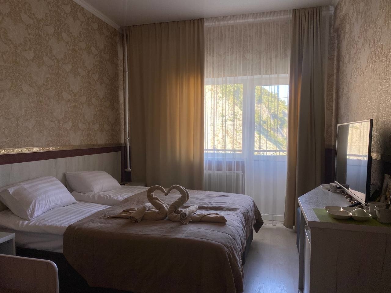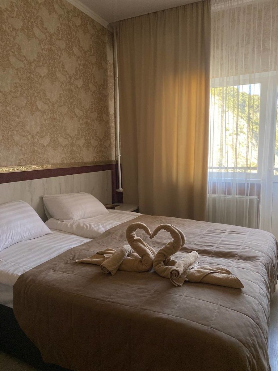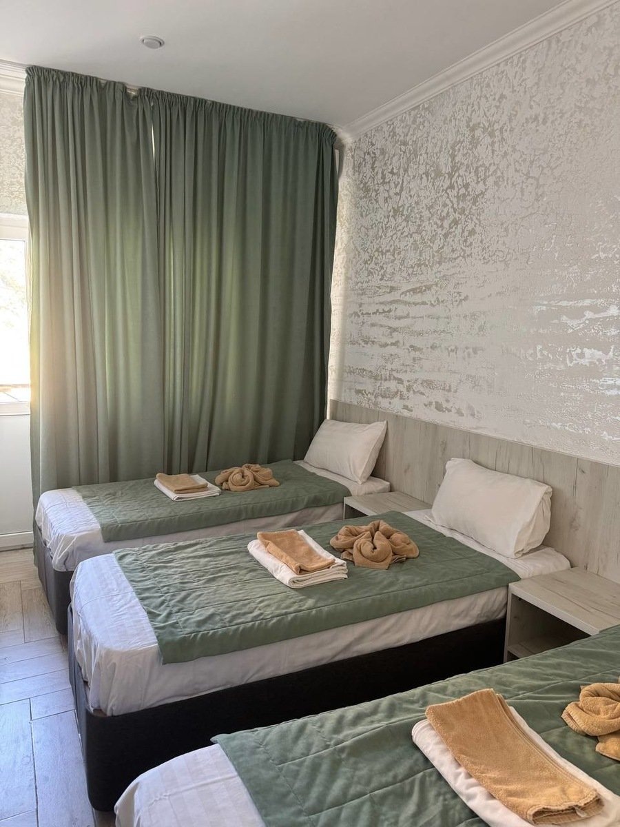 Номера категории СТАНДАРТ: 1-2-3-х местные номера с удобствами в номере, во всех номерах санузел с душем, телевизор, холодильник, сплитсистема, бесплатный Wi-Fi, кровати, стол. Из окон открывается прекрасный вид на горы, бассейн или море. Все номера с БАЛКОНАМИ!