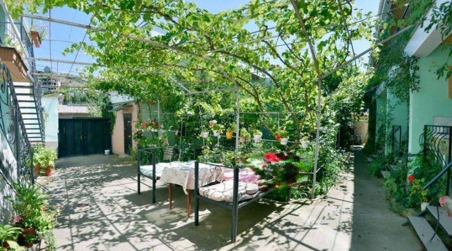 К услугам отдыхающих: двор - цветущий крымский сад, номера различные по комфортности, экскурсии, мангальная площадка, барбекю, автостоянка, гладильная доска, утюг, спутниковое ТВ, Wi-Fi, близость моря